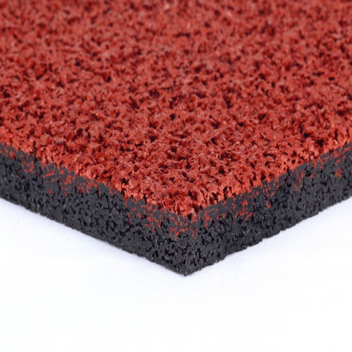 El sistema se compone de dos capas: una subbase formada por gránulos de caucho negro unidos con un aglutinante de poliuretano y un acabado por pulverización de gránulos de EPDM (caucho) de colores y poliuretano pigmentado.
